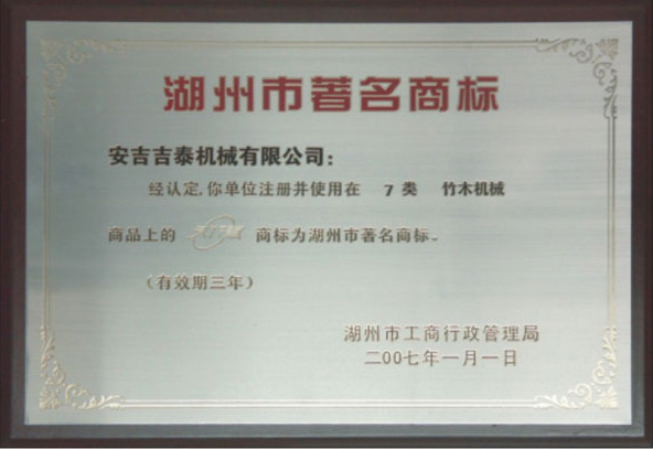 “天賦”牌機(jī)械產(chǎn)品,被評為浙江省湖州市名牌產(chǎn)品